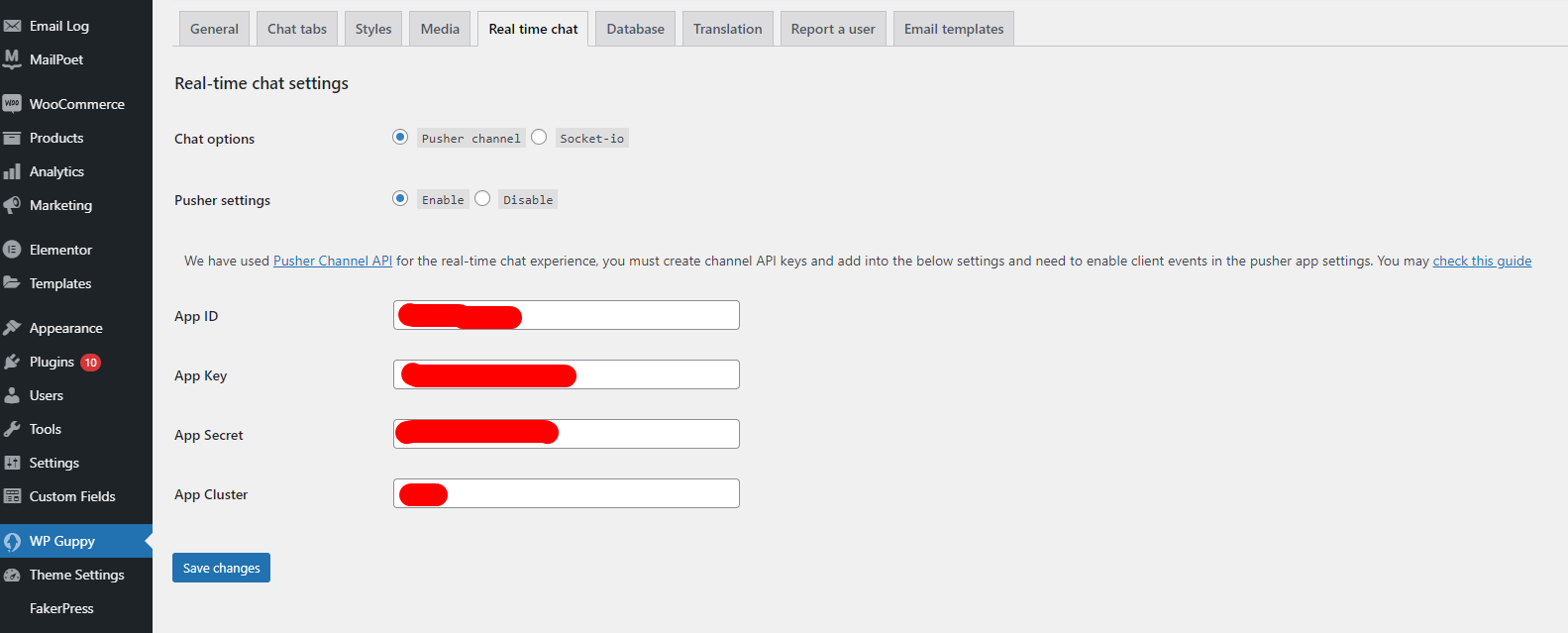 Admin can enable to disable the pusher, if enable then real-time notifications and chat will work. We have used Pusher.com Channels API This API is free for 100 concurrent connections. If your usage is more than 100 concurrent connections then you must buy their plan.
