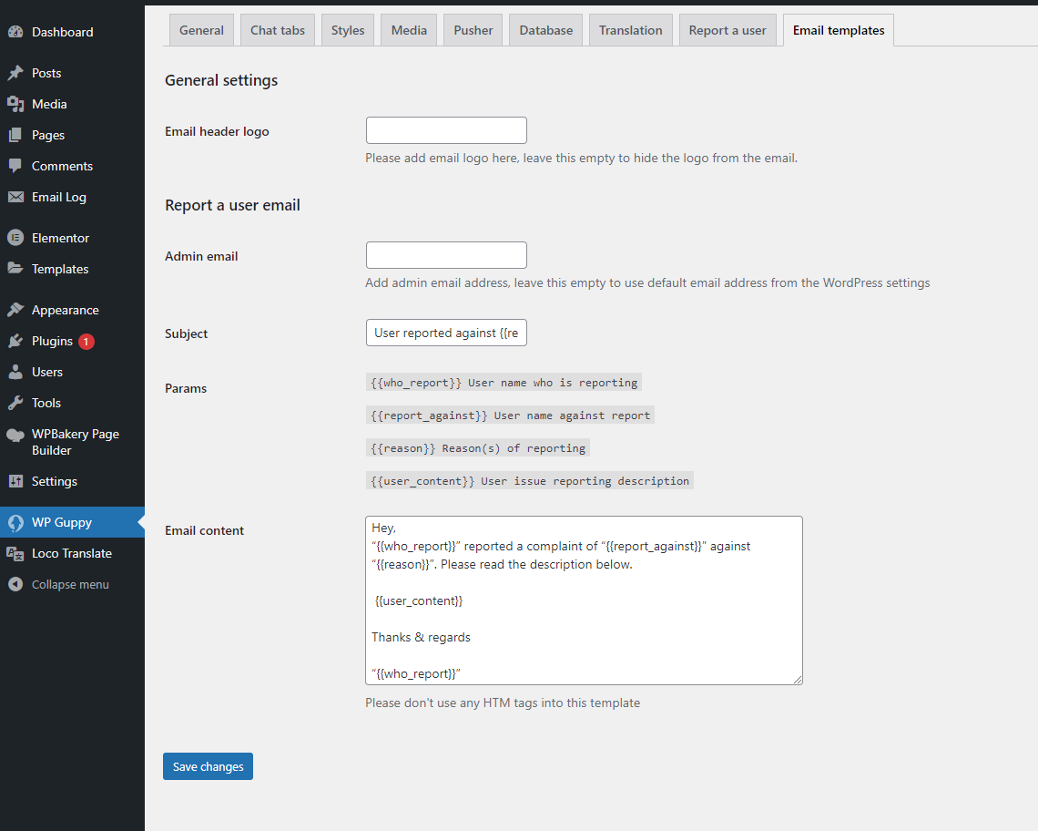 Admin can control all the email templates from the back-end. For example we added report a user email template.