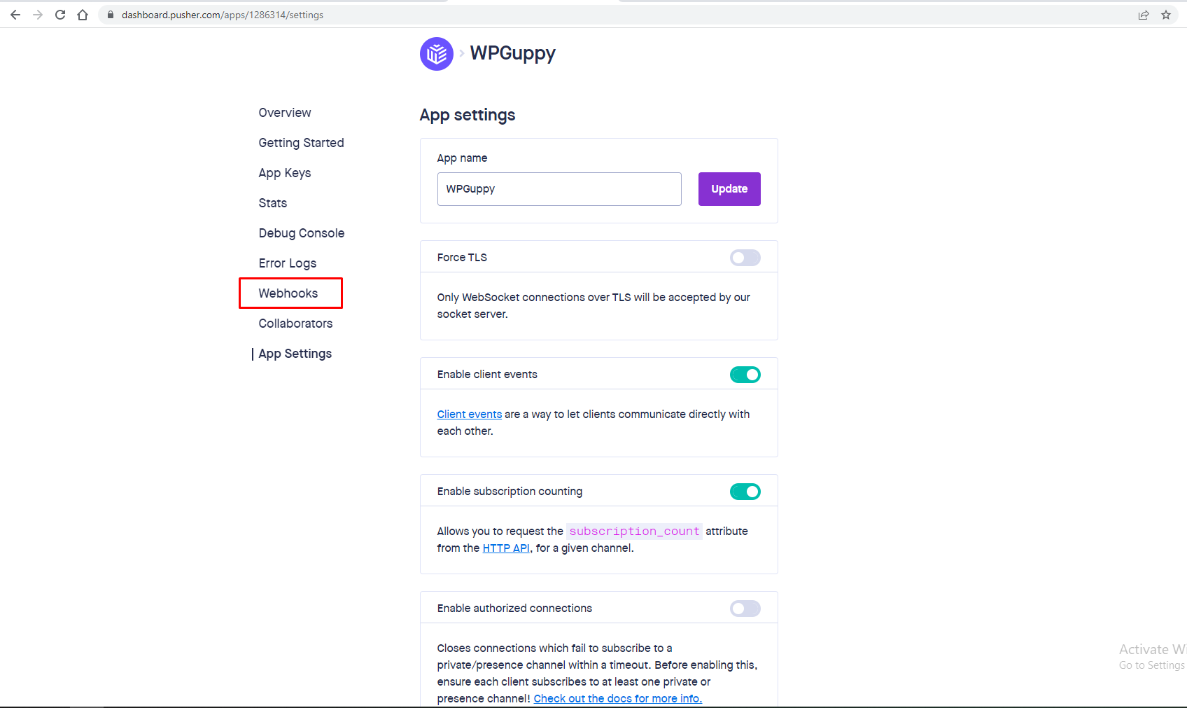 If you want to set up a pusher for a real-time chat, you need to add a webhook file path in your pusher account app settings.